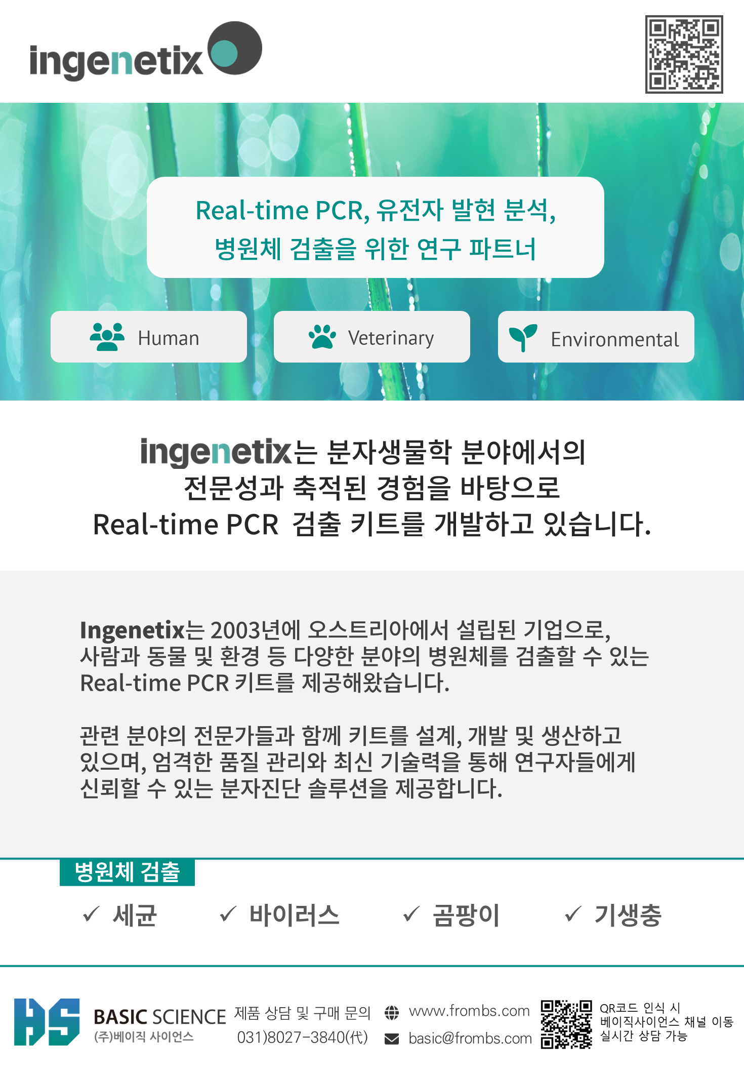 »ç¶÷(Human), µ¿¹°(Veterinary), ȯ°æ(Environmental) ³» º´¿øÃ¼¿¡ ÀûÇÕÇÑ ingenetixÀÇ Å°Æ®¸¦ È®ÀÎÇØº¸¼¼¿ä.